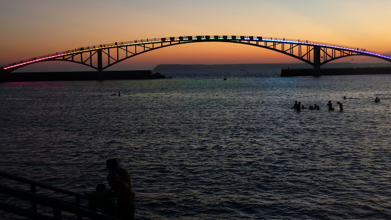 傍晚就回馬公觀音亭看夕陽,順便看一下我們第三天要泳渡的水域,老哥還下海水浴場游了一下,澎湖人真好有一個這麼天然又大的游泳池。
