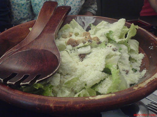 它美麗的圖案的時候,已經被我破壞了,湯頭喝得出有用了很多種的調味料去提味,但是我實在很難說他用了哪些調味料,舌頭不爭氣阿!不過南瓜味沒有很重,這道我給85分,再來上的是凱薩沙拉,"滿滿"的起司粉,一點都不誇張,每一層都有起司粉,應該是為了味道更平均,它的起司粉味道很濃,但是也很"鹹"